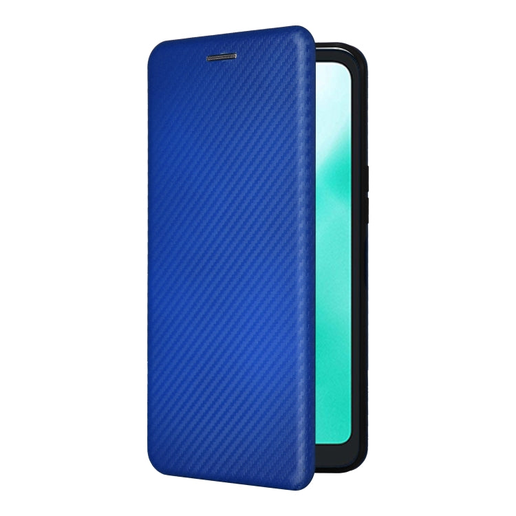 Funda de Cuero con Tapa para Fujitsu Arrows F-52E We2 Plus con Textura de Fibra de Carbono (Azul)