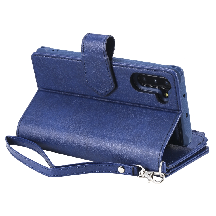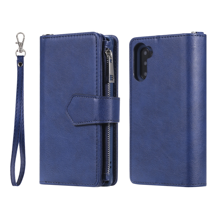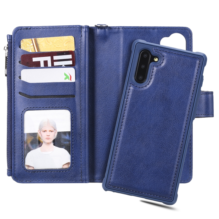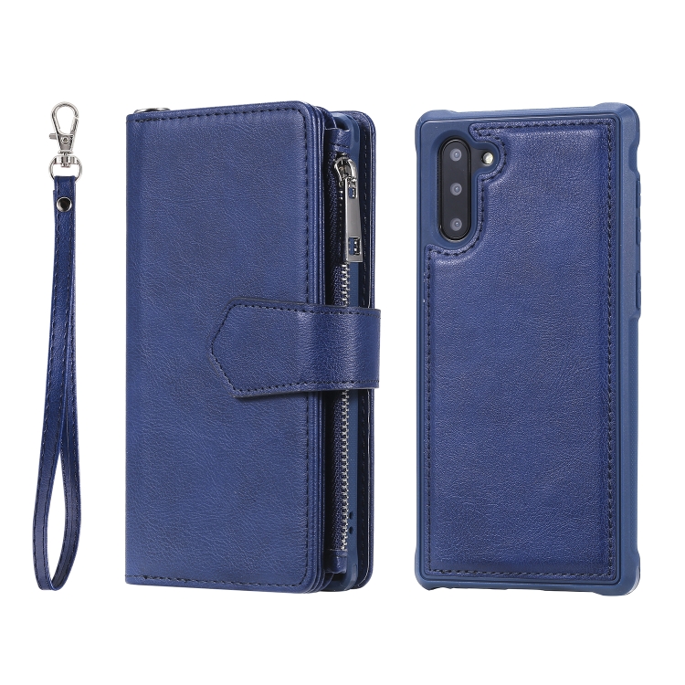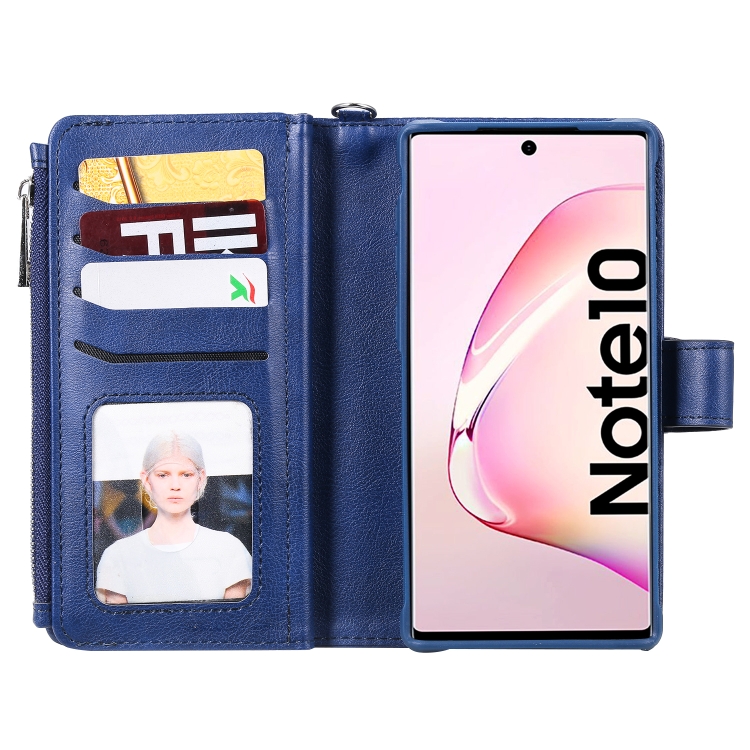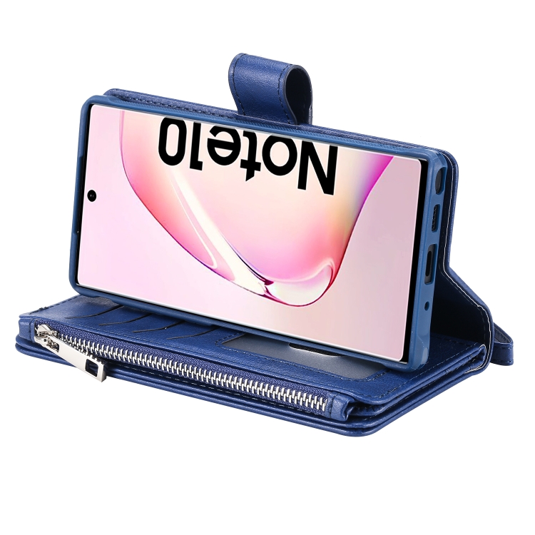 Estuche Protector 2 en 1 Galaxy Note 10 con Cremallera Ranuras para Tarjetas Soporte y Billetera (Azul)