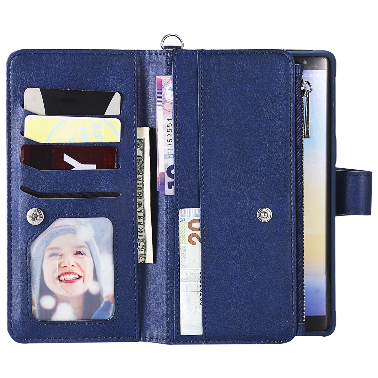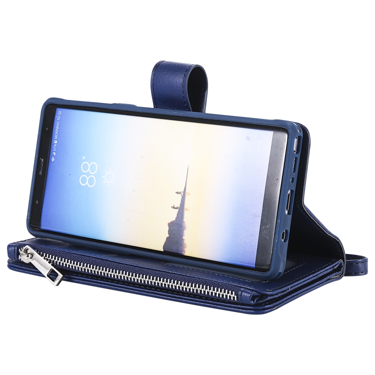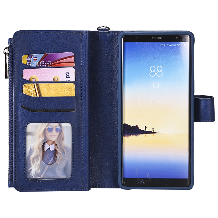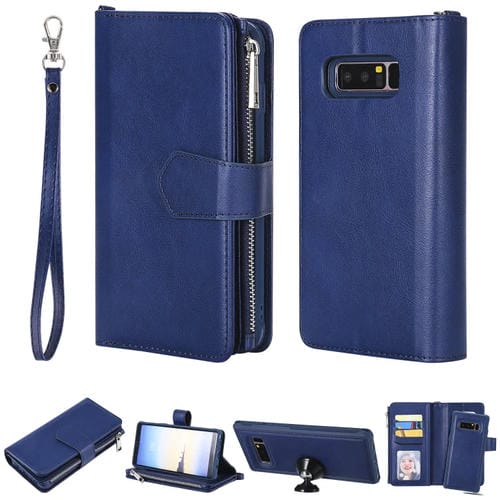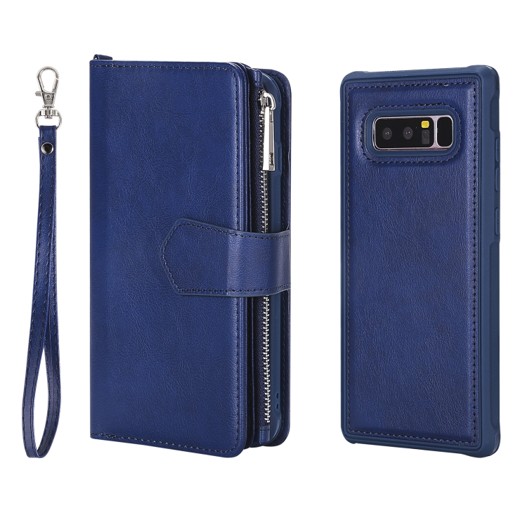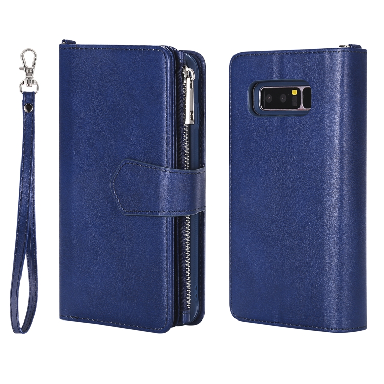 Estuche protector 2 en 1 para Galaxy Note 8 con cremallera, ranuras para tarjetas, soporte para fotos y función billetera (Azul)