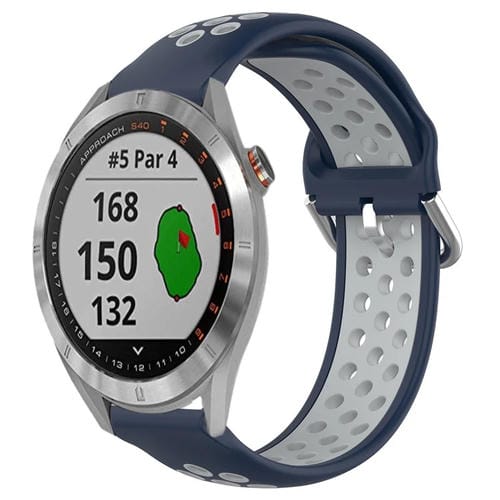 Banda de Reloj Silicona Deportiva para Garmin Approach S40 20mm (Azul Medianoche + Gris)