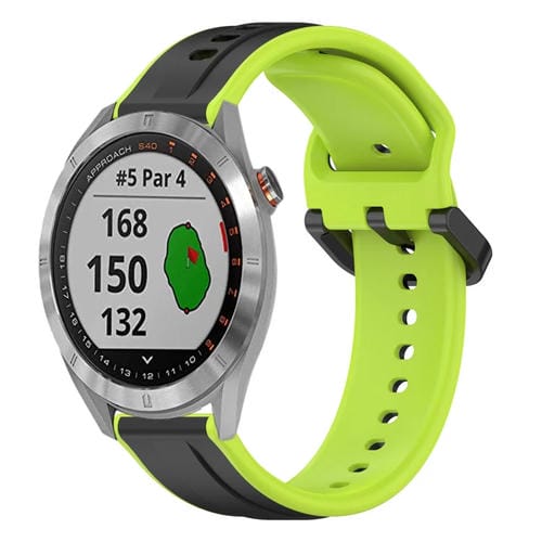 Correa de Silicona para Garmin Approach S40 20mm Bucle Convexo (Negro + Lima)