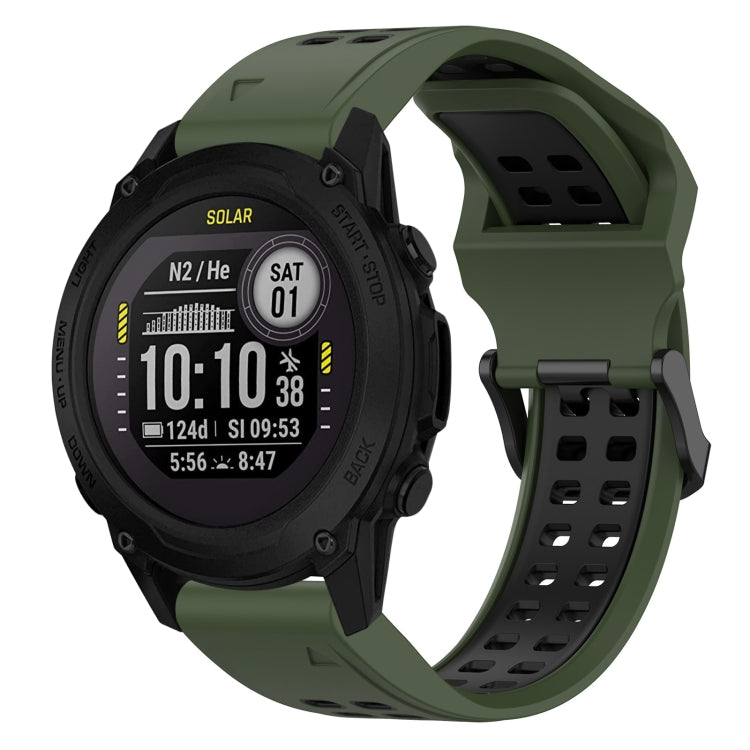 Correa de Reloj Garmin Descent G1 22mm Silicona Hebilla Inversa Dos Colores (Verde Militar + Negro)