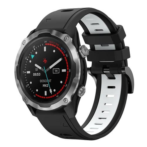 Banda de Reloj de Silicona Deportiva para Garmin Descent Mk 2 26mm (Negro + Blanco)