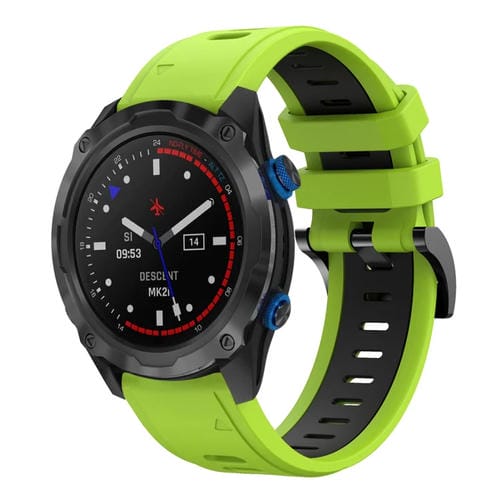 Banda de Reloj de Silicona Deportiva para Garmin Descent Mk 2I 26mm (Verde Lima + Negro)