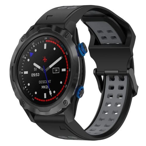 Correa de Silicona para Garmin Descent Mk 2I 26mm con Hebilla Inversa Dos Colores (Negro + Gris)