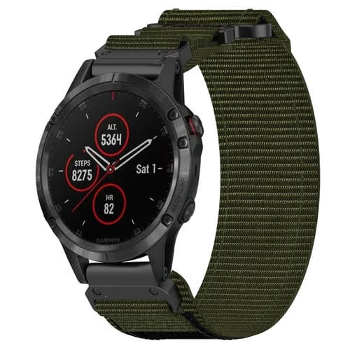Correa de Reloj para Garmin Fenix 5 con Cierre de Gancho y Bucle de Nailon 22mm (Verde Militar)