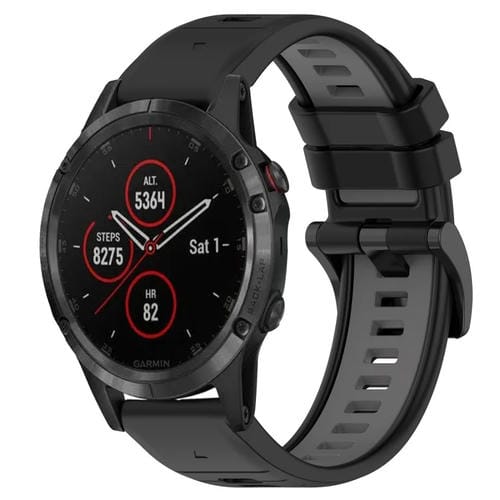 Correa silicona deportiva 22mm para Garmin Fenix 5 Plus (Negro + Gris)