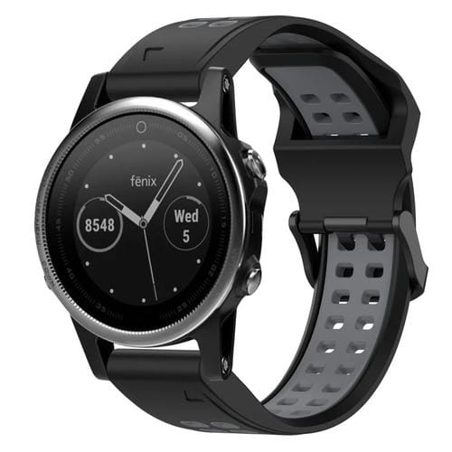 Correa de Reloj para Garmin Fenix 5S 20mm Silicona con Hebilla Inversa (Negro + Gris)