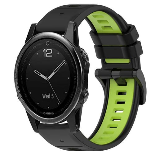 Correa para Garmin Fenix 5S 20mm Sports silicona bicolor (Negro + Verde Lima)