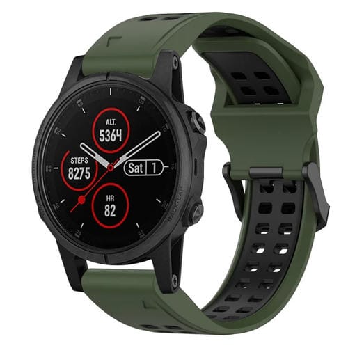 Correa de Reloj Silicona para Garmin Fenix 5S Plus 20mm con Hebilla Inversa Dos Colores (Verde Militar + Negro)