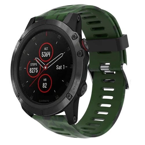 Correa de Reloj para Garmin Fenix 5X Plus 26mm Silicona Estampado Camuflaje (Verde Militar + Camuflaje Militar)