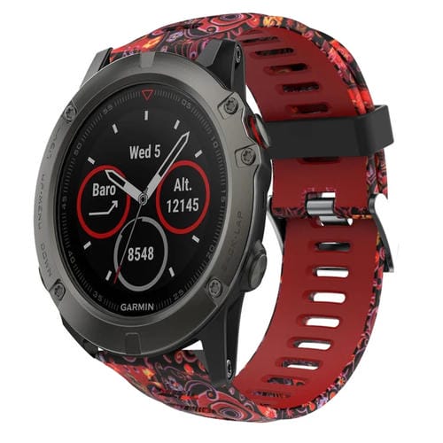 Correa de Silicona para Garmin Fenix 5X Sapphire 26mm con Estampado de Camuflaje (Rojo + Medusas)