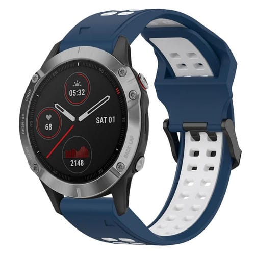 Correa de Silicona para Garmin Fenix 6 22mm con Hebilla Inversa Dos Colores (Azul + Blanco)