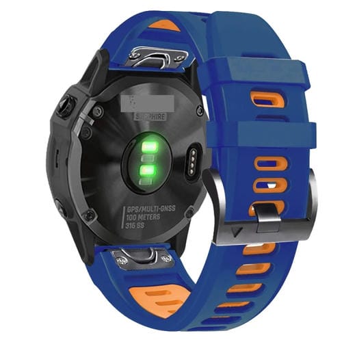 Banda Deportiva de Silicona para Garmin Fenix 6 22mm Dos Colores (Midnight Blue+Orange)