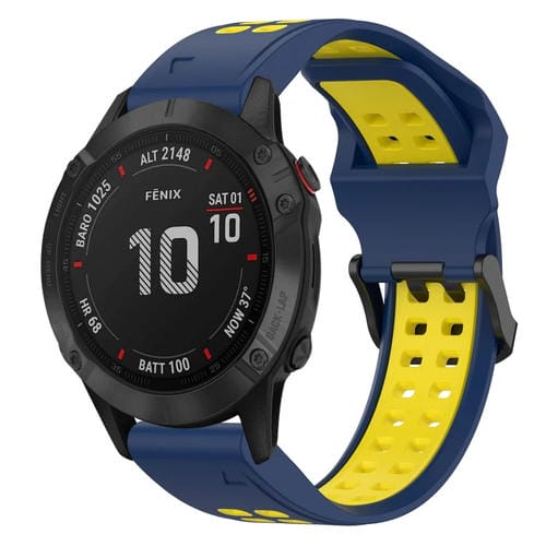 Correa de Reloj silicona para Garmin Fenix 6 Pro 22mm con hebilla inversa bicolor (Azul + Amarillo)