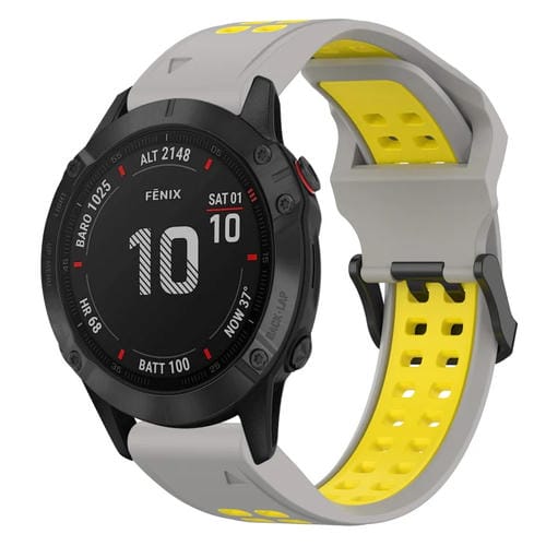 Correa de Reloj para Garmin Fenix 6 Pro 22mm Silicona con Hebilla Inversa Dos Colores (Gris + Amarillo)