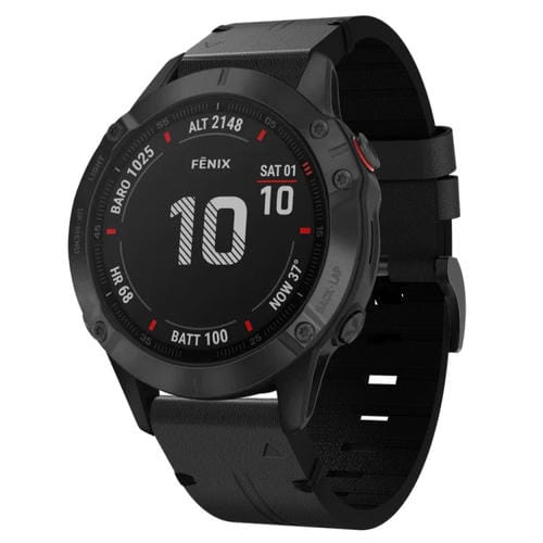 Correa de Reloj de Cuero para Garmin Fenix 6 Pro GPS 22mm con Hebilla de Acero (Negro)