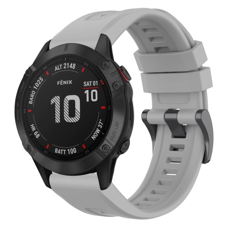 For Garmin Fenix ​​6 Pro GPS Solid Color Black Buckle Silicone Quick Release Watch Band (Gray)