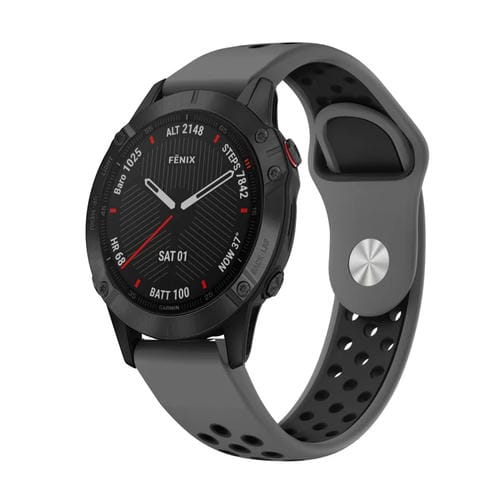 Banda de Reloj Silicona para Garmin Fenix 6 Sapphire GPS 22mm Deportes (Gris + Negro)