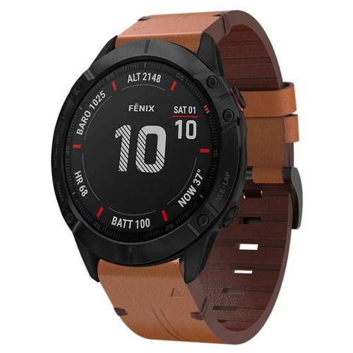 Correa para Garmin Fenix 6X Pro de Cuero con Hebilla de Acero 26mm (Marrón)