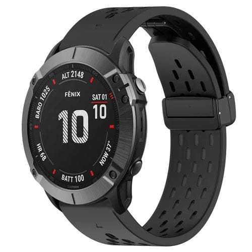 Correa de Silicona para Garmin Fenix 6X Pro con Orificio y Hebilla Plegable de 26mm (Negro)