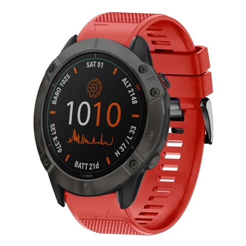 Correa de Silicona para Garmin Fenix 6X Pro 26mm Liberación Rápida (Rojo)