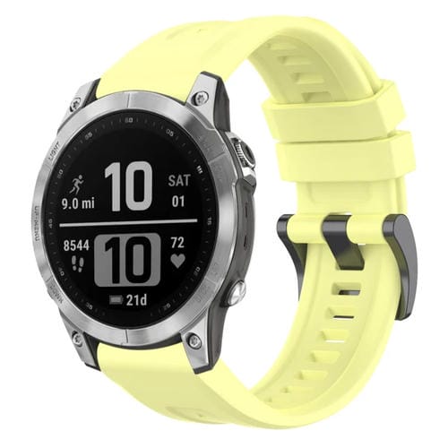 Correa de Silicona para Garmin Fenix 7 Pro con Liberación Rápida y Hebilla Negra (Amarillo)