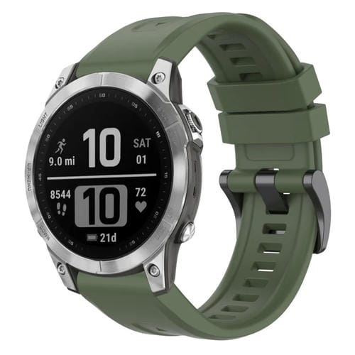 For Garmin Fenix ​​7 Pro Silicone Quick Release Watch Band with Solid Color Black Buckle (Dark Green)