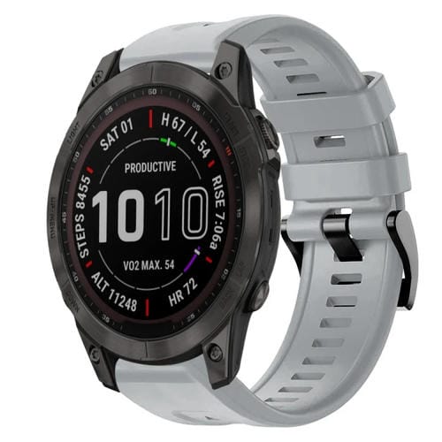 Correa de Silicona para Garmin Fenix 7 Zafiro Solar con Hebilla de Metal (Gris)