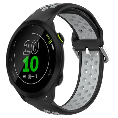 Banda de Reloj silicona deportiva Garmin Forerunner 158 20mm transpirable perforada (Negro + Gris)