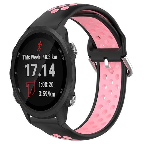 Banda de Reloj Silicona Deportiva para Garmin Forerunner 245 Music 20mm Transpirable Perforada (Negro + Rosa)