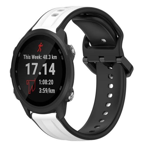 Banda de Reloj Garmin Forerunner 245 Music Silicona Dos Colores Bucle Convexo 20mm (Blanco + Negro)