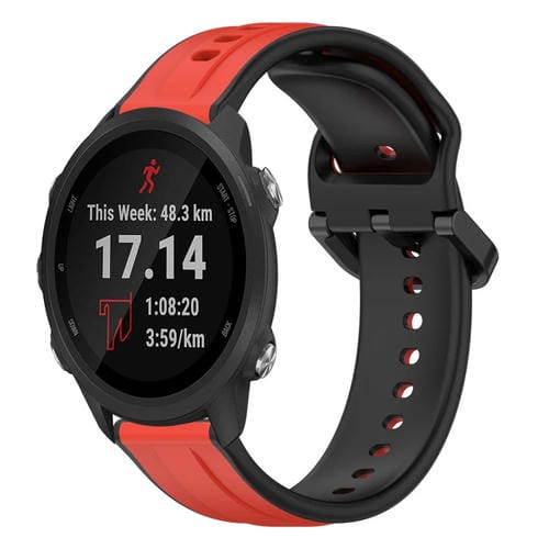 Banda de Reloj para Garmin Forerunner 245 Music de Silicona Dos Colores con Bucle Convexo 20mm (Rojo + Negro)