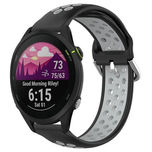 Correa de Reloj Silicona Deportiva Garmin Forerunner 255 22mm Transpirable Perforada (Negro + Gris)