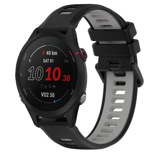 Correa para Garmin Forerunner 255S Music 18mm Silicona Deportiva Bicolor (Negro + Gris)