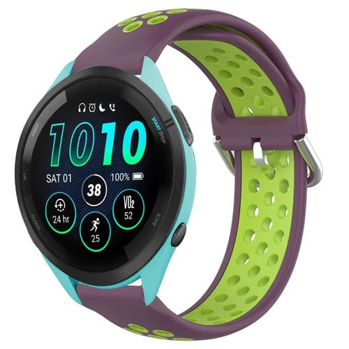 Banda de Reloj Silicona Deportiva Garmin Forerunner 265 22mm Transpirable Perforada (Púrpura + Lima)