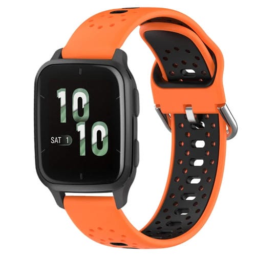 Banda de Reloj para Garmin Forerunner Sq2 20mm Silicona Transpirable Dos Colores (Naranja + Negro)