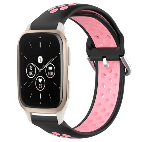 Banda de Reloj para Garmin Forerunner Sq2 Music 20mm silicona deportiva transpirable perforada (Negro + Rosa)