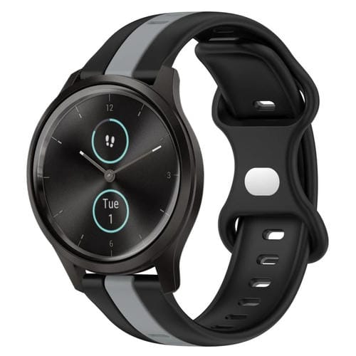 Correa de Silicona para Garmin Garminmove Style 20mm con Hebilla de Mariposa (Negro + Gris)