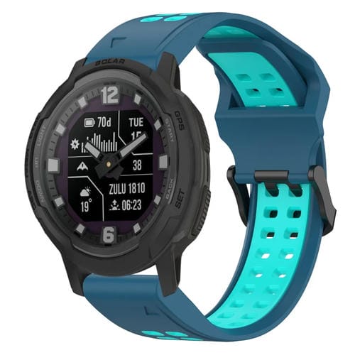 Correa de Silicona para Garmin Instinct Crossover 22mm con Hebilla Inversa Dos Colores (Azul + Verde Azulado)