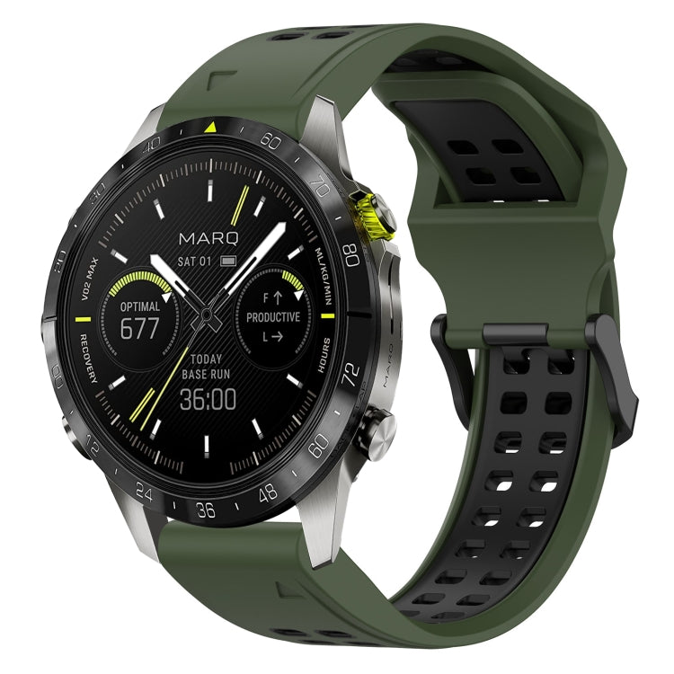 Correa de Reloj Garmin Marq Athlete Gen 2 22mm silicona hebilla inversa dos colores (Verde Militar + Negro)