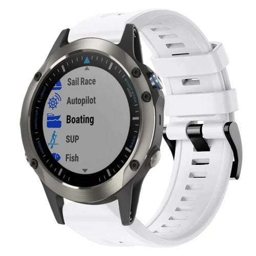 Correa de Reloj para Garmin Quatix 5 Zafiro con Hebilla de Metal y Silicona (Blanco)