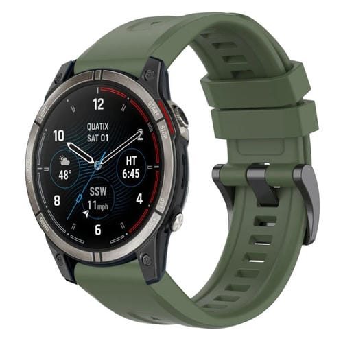 For Garmin Quatix 7 Pro Silicone Quick Release Watch Band with Solid Color Black Buckle (Dark Green)