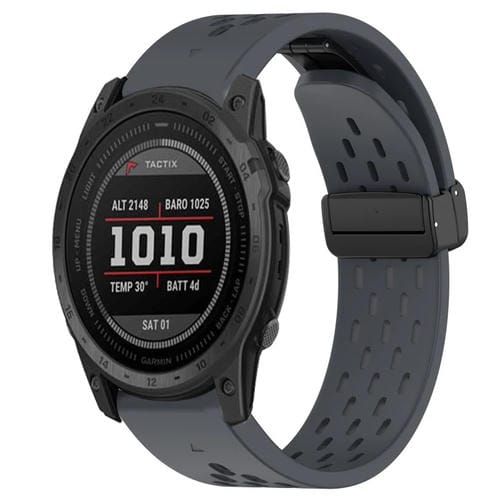 Correa de Reloj Silicona para Garmin Tactix 7 con Orificio y Hebilla Plegable 26mm (Gris Oscuro)