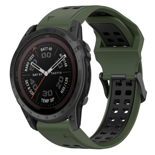 Correa de Reloj Silicona para Garmin Tactix 7 Pro 26mm con Hebilla Inversa Dos Colores (Verde Militar + Negro)