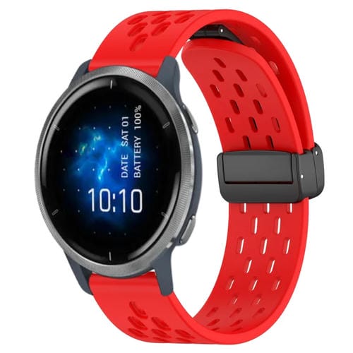 Correa de Reloj para Garmin Venu 2 de Silicona con Cierre Magnético Plegable de 22mm (Rojo)