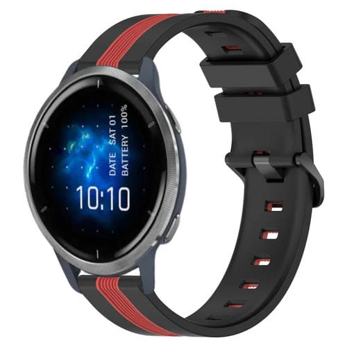 Correa de Silicona para Garmin Venu 2 22mm Dos Colores Vertical (Negro + Rojo)