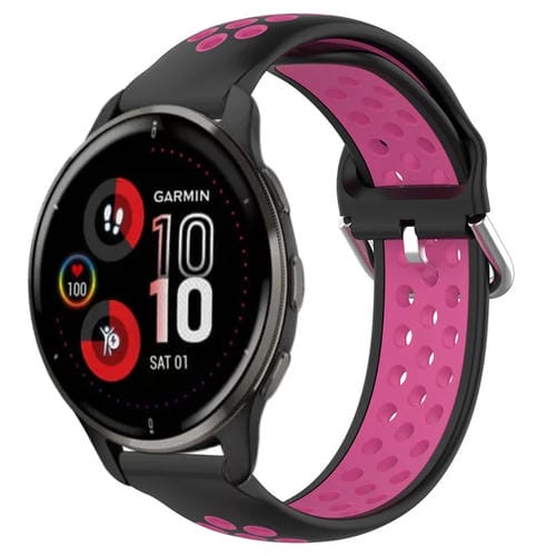Correa de Silicona Deportiva para Garmin Venu 2 Plus 20mm Transpirable Perforada (Negro + Rojo Rosa)