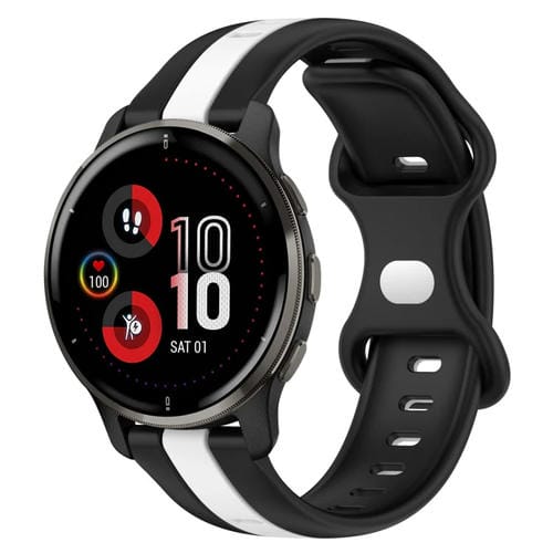 Correa de Silicona para Garmin Venu 2 Plus 20mm con Hebilla de Mariposa Dos Colores (Negro + Blanco)