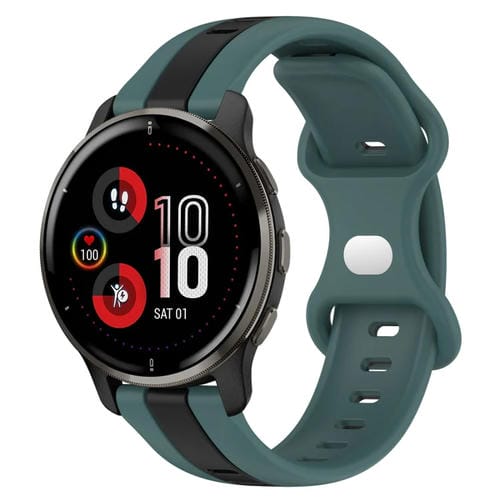 Correa de Silicona para Garmin Venu 2 Plus 20mm con Hebilla de Mariposa (Verde + Negro)